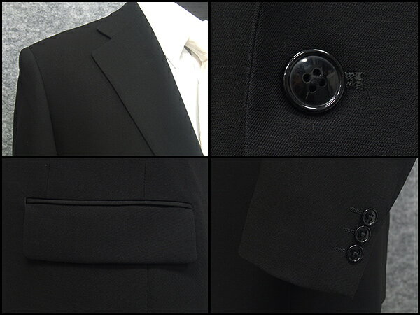 商品詳細 超黒 礼服:シングルスーツ 色 超黒(礼服用) 柄 無地(礼服用ギャバタッサー) 表地(混率) 毛85% ポリエステル15% Fabric made in Japan 裏地 胴(メッシュ) ポリエステル 袖 ポリエステル ベント センターベント スラックス ワンタック ストレートパンツ シルエット 普通 (ブリティッシュスタイル) 肩幅広め 対応季節 背抜き仕立て 夏 仕様 本台場仕様 超黒加工 静電防止加工 大型内ポケット 見返し:ピンポンステッチ フルパイピング仕様 メッシュ裏地 アジャスター付き(+-6cm可動) メーカー希望 小売価格 68,000円(税別) 暑い日本の夏用に企画したサマーフォーマルです。
