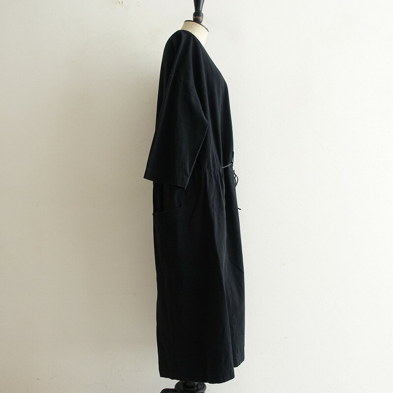 表記サイズ:L 実寸サイズ:肩幅70cm, 身幅66cm, 袖丈36cm, 着丈126cm, 裄丈73cm, ウエスト幅69cm, ヒップ幅72cm, スリット(バック)36cm (多少の誤差はご了承ください) 素材:コットン47%,ビスコース34%,ウール15%,エラスタン4% デザイン:ALBUM DI FAMIGLIAのドローストリングワンピースです。