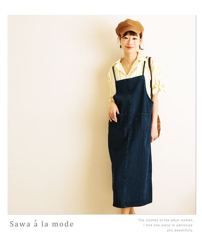 コーデにカジュアルさ引き出す、デニムのオールインワンスカートです。